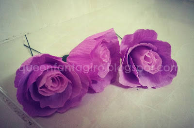 Dalam sibuk sibuk tu, sempat juga aku memprojekkan diri aku dengan bunga kertas crepe.